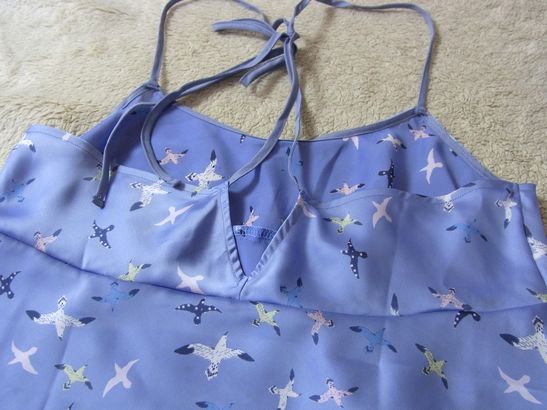 キャミソールの肩紐が後ろでクロスしていて、背中に切り込みが入ってます