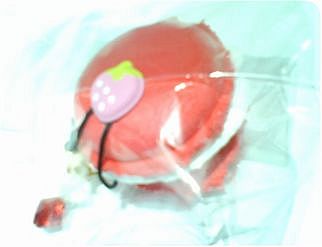 マカロンを包んでいるビニールを留めているシールもイチゴ
