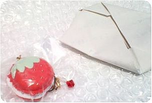 プーペガールつながりで知り合った*HanA*さんが材料費+送料のみで譲ってくださると書かれていたイチゴのマカロンストラップ