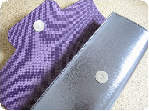 クラッチはシルバーグレーでセンターに蝶の型押し