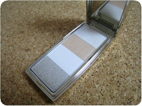 配合成分:タルク、リンゴ酸ジイソステアリル、トリ(カプリル/カプリン酸)グリセリル、イソステアリン酸水添ヒマシ油、ワセリン、ミリスチン酸マグネシウム、ステアロイルグルタミン酸アルミニウム、ラウロイルリシン、メチコン、ミリスチン酸亜鉛、デヒドロ酢酸ナトリウム、パラベン、[+/-]銀・グンジョウ、酸化スズ、酸化チタン、酸化鉄、シリカ、(PET/Al/エポキシ樹脂)ラミネート、ホウケイ酸(Ca/Al)、マイカ