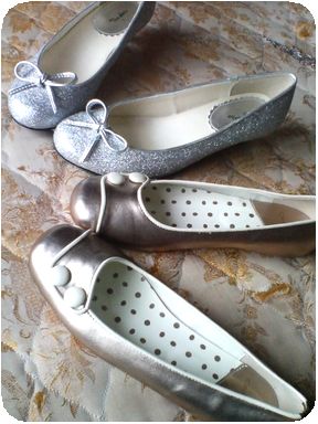 シルバーパンプスとセールで安くなってたシャンパンゴールドのぺたんこパンプスをセレクト