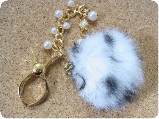 白黒マーブルのファーとパールが付いたグローブホルダー