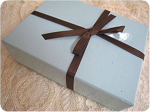 送られてきたパッケージはミントカラーのBOXに茶色いリボンでチョコミントみたい