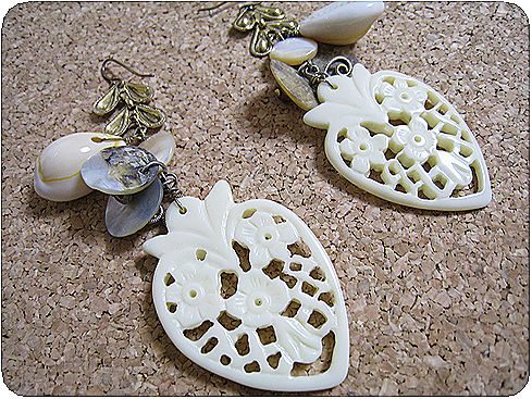 丸いシェルと貝殻、くすんだゴールドの飾りが付いてかなりジャラジャラとした印象