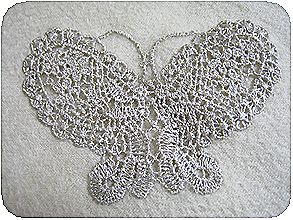 片面には小花の刺繍、裏には蝶の刺繍がシルバーっぽい糸で施されておりオフホワイトのマフラーと合わさって上品な印象です