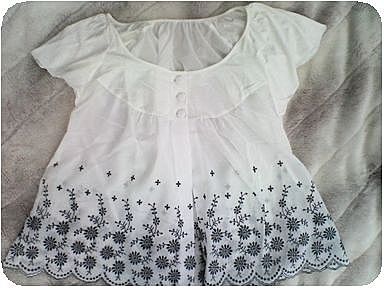 細かいお花の刺繍と裾のカットワークが可愛いブラウス