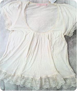 袖と裾に繊細なレース、胸元にもピコレースがあしらわれています