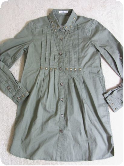 襟、ウエスト、袖口、背中にもスタッズが付いており、センターと背中のラインにプリーツが入っています