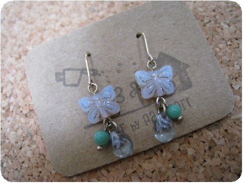 ミルキーカラービーズの蝶モチーフのピアスとベルばらシリーズの入浴剤